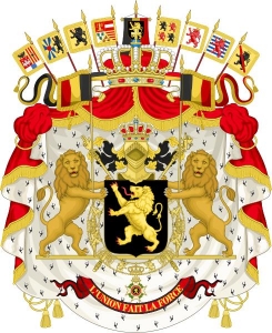 1837年に採用されたものであり、中央にベルギーの国家的象徴である一組のライオンがベルギー国旗を支えている構図です。