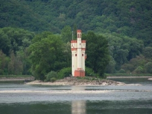 ゴツゴツとした岩場にネズミ棟は立っています。この新ゴシック様式の塔は13世紀にマインツ大司教によって通行税関窓口として建てられました。「ネズミの塔」の名前の由来はドイツ語の税関、マウト(Maut)から来ています。(ドイツ語でネズミ=Maus)