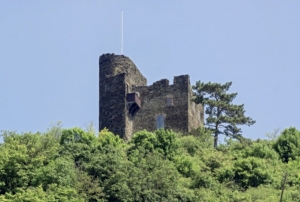 実名、トュルムベルク城(Turmberg)の名を持つネズミ城は、トリーア大司教ベームント2世が、1353年から88年の歳月をかけて彼が新たに取得した領土を守るためにライン川右岸に建設しました。当時、最も近代的で最新技術を駆使した建築物として注目を受けました。1370年になると、カッツェネルンボーゲン伯爵2世は近隣の山に新たにカッツェネルンボーゲン城を築城します。人々はこの2つの城をまるでネコとネズミがスパイをし合っているよう、と「ネズミ城」と「ネコ城」というニックネームを付けました。