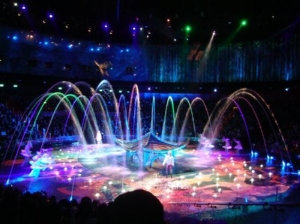 シルク・ド・ソレイユの元プロデューサー、フランコ・ドラゴーヌが手掛けた「ザ・ハウス・オブ・ダンシング・ウォーター (水舞間)」。構想に5年、リハーサルに2年、総制作費になんと20億香港ドル(2億5000万米ドル)!水を使ったダイナミックな演出が特徴で、観る人をぐっと引き込みます。